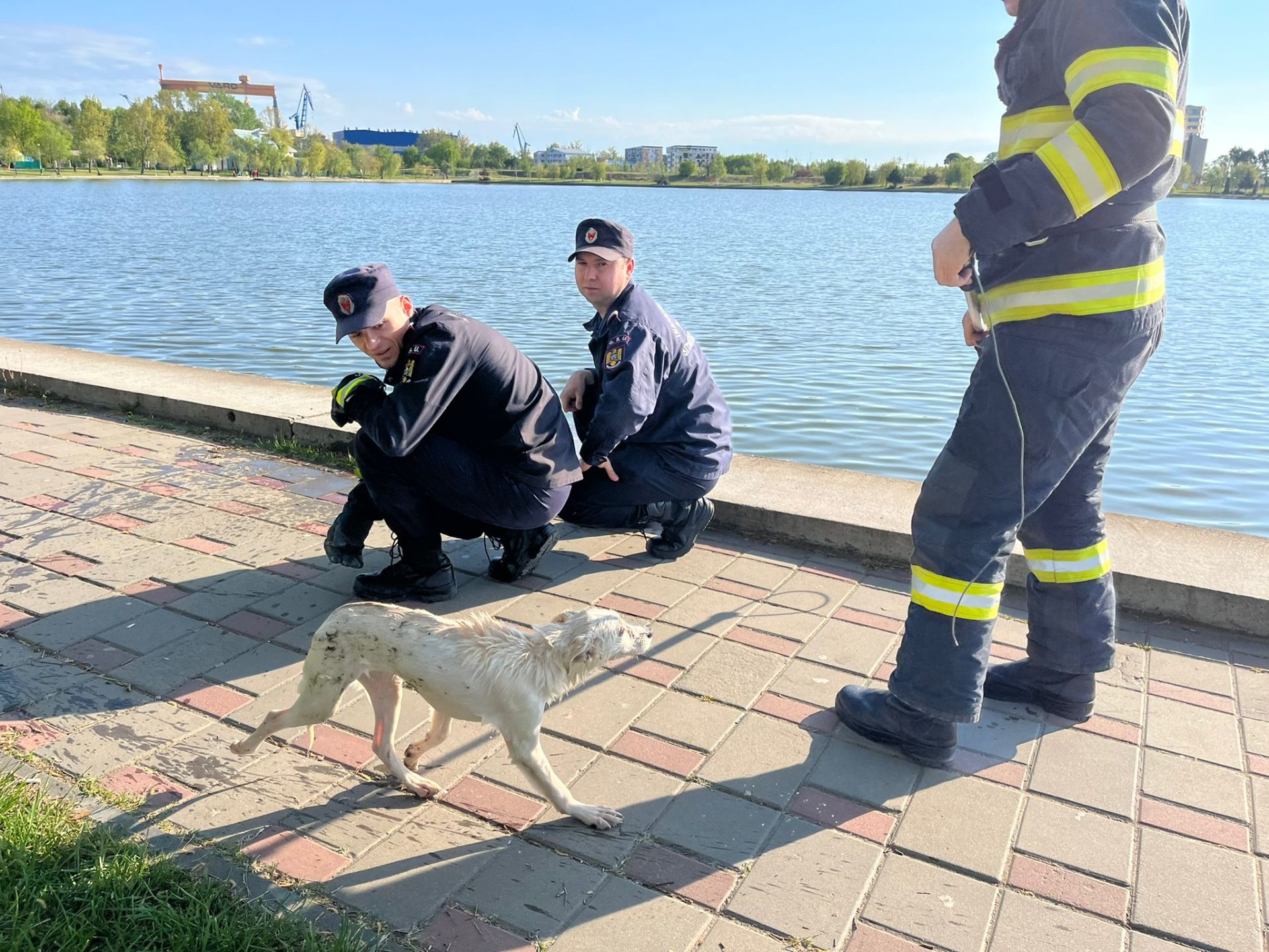 În scurt timp a fost mobilizat un echipaj format din 3 subofițeri cu o autospecială de transport și o barcă pneumatică. La fața locului, în mai puțin de 10 minute de la primirea apelului cățelușa a fost salvată.