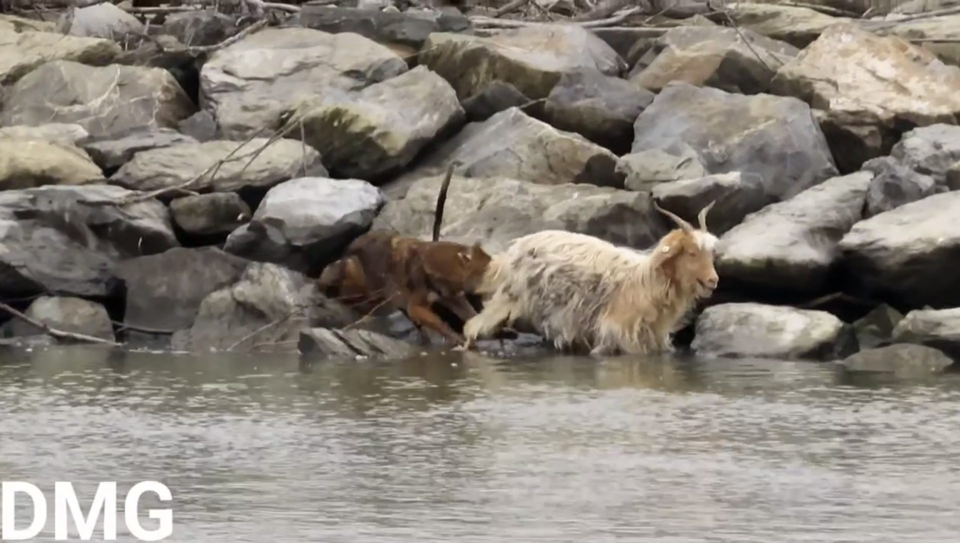 Capra pare însă să fie mai deșteaptă și se refugiază în apă, iar șacalul se vede nevoit să se îndepărteze. Imaginile au fost surprinse de un localnic aflat la bordul unei ambarcațiuni. Șacalul nu pare însă că vrea să renunțe și la scurt timp atacă turma. Doar apariția ciobanului îl face să renunțe și se refugiază în păduricea din apropiere.