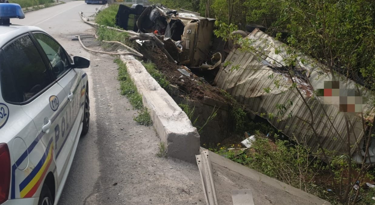 A scăpat ca prin urechile acului, în urma unui grav accident rutier. Un bărbat de 59 de ani din Ucraina, care conducea un ansamblu de vehicule format dintr-o autoutilitară și o semiremorcă, a pierdut controlul volanului în dreptul localității Telița și s-a răsturnat în afara părții carosabile.