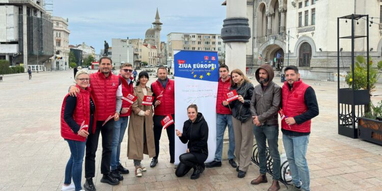 Membrii Organizației Municipale PSD Constanța au desfășurat, astăzi, o acțiune în Piața Ovidiu, cu ocazia Zilei Europei.