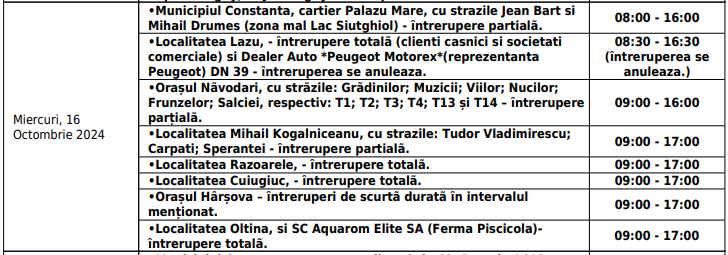 Întreruperile de curent electric continuă și mâine în județul Constanța. Rețele Electrice Dobrogea anunță noi întreruperi programate pentru buna administrare și funcționare a rețelei de distribuție a energiei electrice.